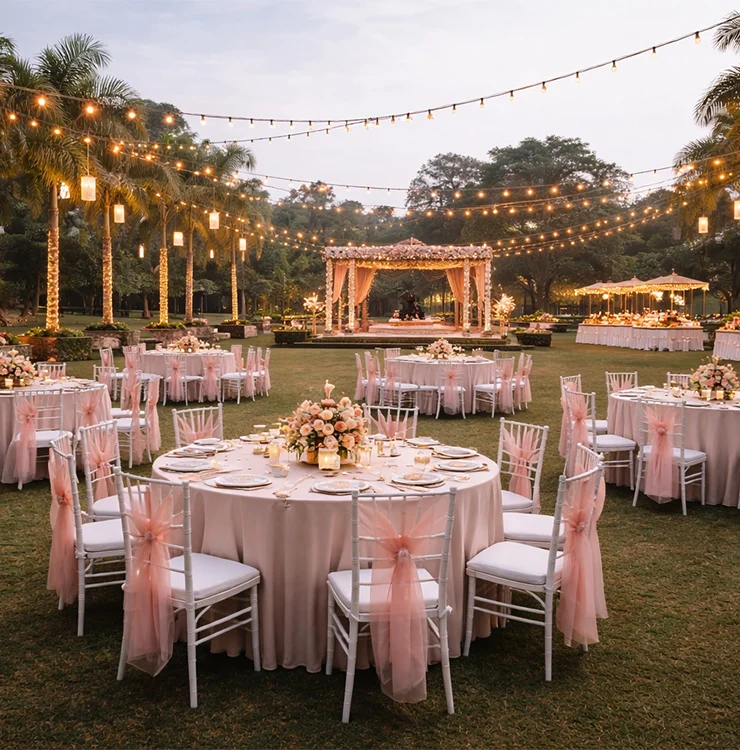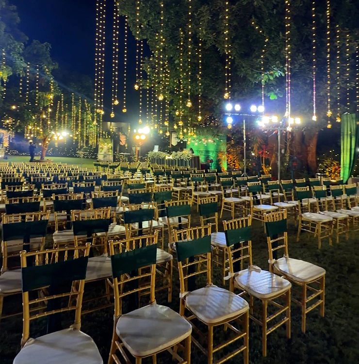 Host your dream destination wedding in Karjat on our stunning lawns, surrounded by nature’s beauty. Whether it’s an intimate ceremony or a grand celebration, our lush green spaces offer the perfect outdoor setting for vows, dancing, and unforgettable moments under the open sky.